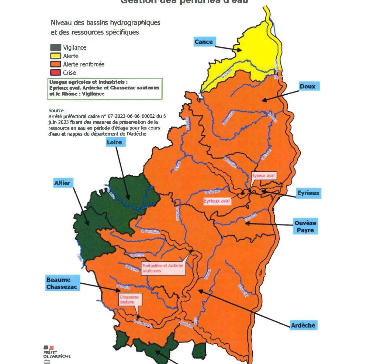 • Bassins versants en ALERTE RENFORCÉE : Doux-Ay, Eyrieux, Ouvèze-Payre, Ardèche, Beaume-Chassezac ;