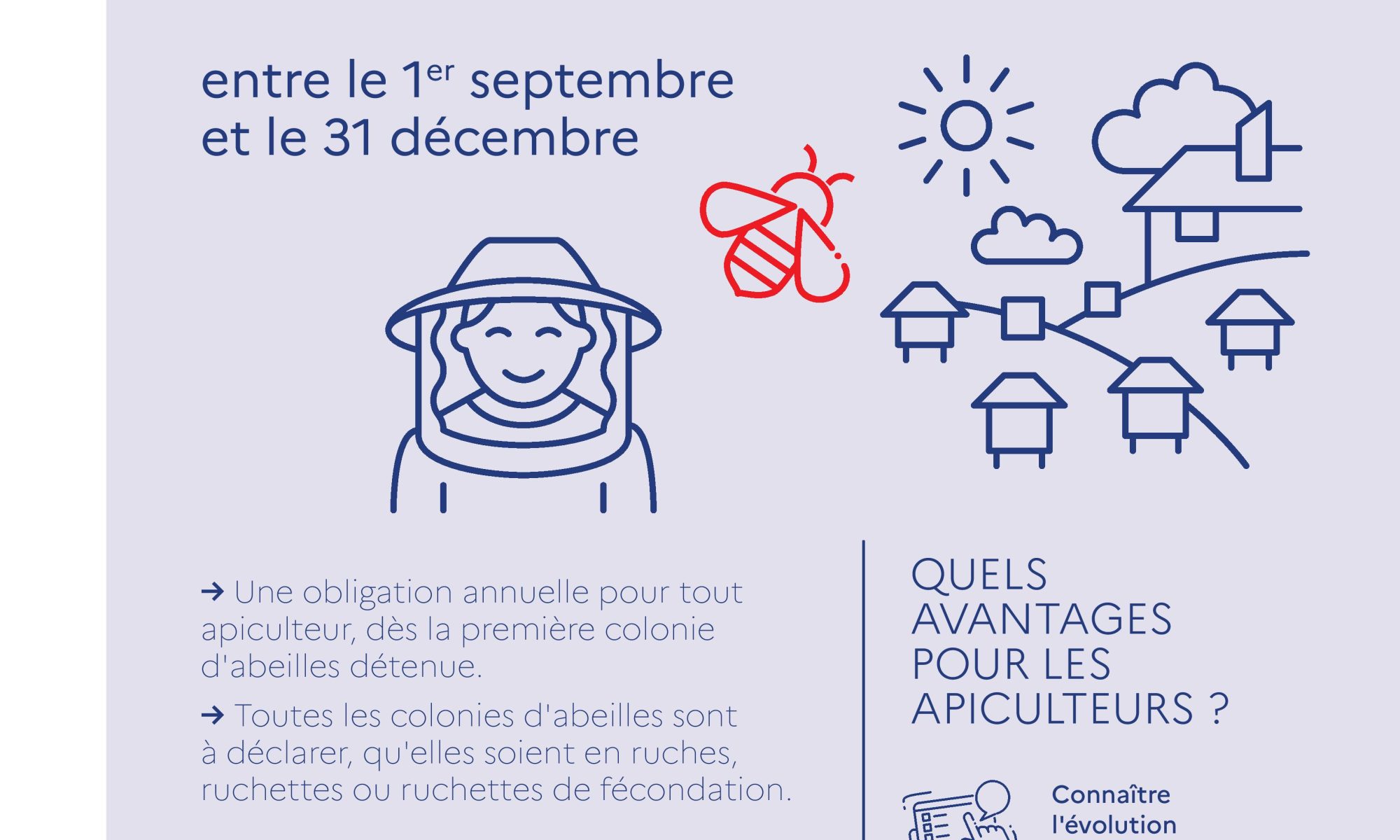 Tout propriétaire ou détenteur de colonies d’abeilles – dès la 1e ruche – a l’obligation de procéder à une déclaration de détention et d’emplacement de ruches pendant la campagne annuelle qui a lieu entre le 1er septembre et le 31 décembre.